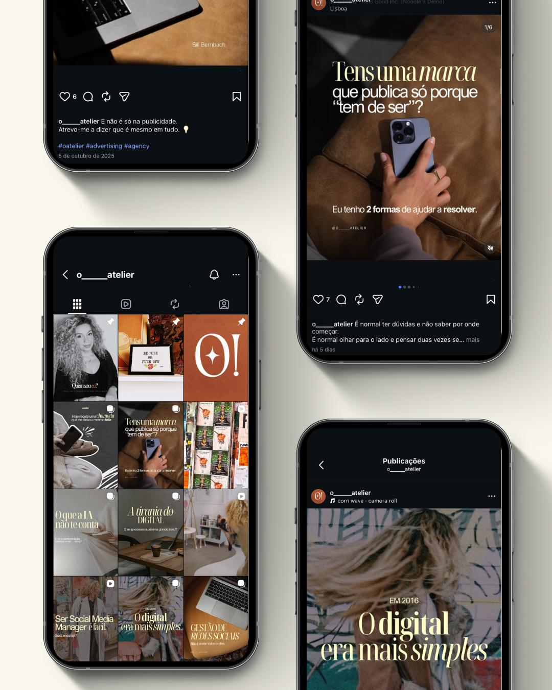 Hoje, trabalho entre o design, a estratégia e a narrativa visual, dando vida a marcas com identidade e propósito. Marcas que querem comunicar de forma autêntica e tornar-se verdadeiramente memoráveis.